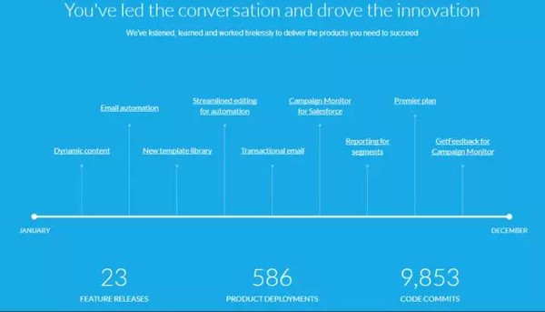 年年月月花相似,但靈感迸發(fā)的設(shè)計(jì)師們可不會(huì)拘泥于前人之作。相同的祝福,更高的愿景與期許,更精湛的設(shè)計(jì)巧思,每年的新年網(wǎng)站,無(wú)疑都是一場(chǎng)視覺(jué)與創(chuàng)意的盛宴。 飛向新出發(fā)點(diǎn)pernod-ricard 網(wǎng)站地址:http://new-year.pernod-ricard.com/ 新的一年永遠(yuǎn)是揚(yáng)帆起航的日子,這對(duì)于Pernod-Ricard這一世界級(jí)酒類(lèi)出產(chǎn)商也一樣,正如設(shè)計(jì)師想表達(dá)的那樣——去飛吧,穿過(guò)宏偉的云層,來(lái)到但愿的神殿。 首頁(yè)載入完畢后,設(shè)計(jì)師就讓用戶穿越云層來(lái)到第二“天”。首頁(yè)氣魄恢宏,全動(dòng)態(tài)頁(yè)面向用戶展示了一個(gè)洶涌澎湃的天空世界,也將企業(yè)的格式和愿望顯示的淋漓盡致。而導(dǎo)航頁(yè)頁(yè)面之上仿佛讓用戶早已登上了云層的頂端,已經(jīng)“一覽眾云小”;一串祝福案牘在畫(huà)面正中,先其他元素一步表達(dá)主題。導(dǎo)航欄做成了8個(gè)菱形塊,每一個(gè)幾何體背后都是一段小視頻,展示著企業(yè)的瞻望之意。 但設(shè)計(jì)師不會(huì)只知足云層殊效,于是他們?cè)诿恳粋(gè)導(dǎo)航下面,設(shè)計(jì)師將與流動(dòng)、發(fā)生了什么事糅合在一起,而且都是以創(chuàng)意的“飛行模式”展開(kāi),充分描繪了趣味性,也讓消費(fèi)者感慨感染到這家公司的好與壞。 寫(xiě)下你的新年祝福,我為你展現(xiàn) evs新年網(wǎng)站 網(wǎng)站地址:http://xmas.evs.com/summary 作為一個(gè)迎新站,EVS網(wǎng)站的設(shè)計(jì)夸大互動(dòng)這一層面——網(wǎng)站以make anew-year-message為主題,通過(guò)自己公司員工進(jìn)行字母演繹,按照用戶所設(shè)定的序列排列出來(lái)。而這些都可以由用戶自行“DIY”。第一條“togetherwe’re making extrordinary”則是公司自行設(shè)計(jì)的迎新Slogan,當(dāng)用戶進(jìn)入網(wǎng)頁(yè)時(shí)就會(huì)自動(dòng)播放,這不但引發(fā)了用戶創(chuàng)造屬于自己內(nèi)容的沖動(dòng),而且還傳遞了自身品牌。 作為一個(gè)廣告服務(wù)公司的網(wǎng)站,EVS新年網(wǎng)站天然在設(shè)計(jì)之上也可圈可點(diǎn),大面積純色排版、富有沖擊力的色調(diào)展示,展示出一個(gè)網(wǎng)站不凡的表現(xiàn)空間。而手寫(xiě)體的文字、單屏頁(yè)面的板式也同時(shí)將網(wǎng)站變成了一個(gè)顯現(xiàn)企業(yè)風(fēng)格的地方。 再見(jiàn),我們的2015 campaignmonitor新年網(wǎng)站 網(wǎng)站地址:https://www.campaignmonitor.com/2015/ 當(dāng)所有迎新網(wǎng)站大紅大綠之時(shí),源自Saleforce的Campaignmonitor網(wǎng)站卻冷靜的打出自己的主題——“review”,獨(dú)具創(chuàng)意地用數(shù)據(jù)進(jìn)行展示,為其所服務(wù)過(guò)的企業(yè)做了一個(gè)宏觀服務(wù)講演。讓“圈里人”人深刻的意識(shí)到自己所在的2015年畢竟發(fā)生了什么,也同時(shí)鞏固了企業(yè)的“江湖地位”。 也許源自自身在數(shù)據(jù)運(yùn)營(yíng)層面極深的造詣,campaignmonitor的設(shè)計(jì)師將網(wǎng)站設(shè)計(jì)出了一個(gè)數(shù)據(jù)講演的味道,長(zhǎng)頁(yè)面設(shè)計(jì)讓每一頁(yè)用不同的顏色以及各種圖表展示出多種數(shù)據(jù)。而且所有頁(yè)面都有一個(gè)相互聯(lián)系關(guān)系的主題,從2015年的方方面面展示著企業(yè)所服務(wù)的客戶與整個(gè)營(yíng)銷(xiāo)“大世界”絲絲縷縷的關(guān)系,讓每個(gè)客戶在讀到頁(yè)面之時(shí)都能得到深深的觸動(dòng)。 整個(gè)網(wǎng)站已經(jīng)被設(shè)計(jì)師幾乎完全“數(shù)據(jù)化”,像是一張張商務(wù)幻燈片。但是網(wǎng)站設(shè)計(jì)卻涓滴沒(méi)有讓人有閱覽時(shí)的不適感,反而感到每一頁(yè)被銜接的恰到好處,而這恰是設(shè)計(jì)師對(duì)于網(wǎng)站元素靈活掌握的體現(xiàn)之處——哪幾頁(yè)用數(shù)字,哪幾頁(yè)用圖片,都是建立在設(shè)計(jì)師節(jié)奏把控之上。 海闊天空 stellar.aero2016年新航線預(yù)報(bào) 網(wǎng)站地址:https://www.stellar.aero/ 新的開(kāi)端意味著無(wú)窮潛力與可能,也象征著未知的機(jī)遇與挑戰(zhàn),這句話對(duì)于Stellar航空公司來(lái)說(shuō)不能更加貼切,向天空挑戰(zhàn),挖掘更多的可能無(wú)疑成為了他們新一年的目標(biāo)!而這種愿望也被設(shè)計(jì)語(yǔ)言重新描繪,展現(xiàn)在了Stellar官網(wǎng)上,高遠(yuǎn)遼闊的天空,旖旎壯麗的景觀,以及交相照映的“飛機(jī)與天空”的和諧友好,為來(lái)年譜寫(xiě)了一章漂亮的序言。 網(wǎng)站首頁(yè)采用長(zhǎng)頁(yè)面的設(shè)計(jì)形式,利用通屏大背景與文字排版組合,配合殊效,奏響了視覺(jué)上華麗的篇章。本站通過(guò)表達(dá)“飛機(jī)”與“天空”的關(guān)系,對(duì)實(shí)力的塑造交上了滿足的謎底。首頁(yè)對(duì)殊效的運(yùn)用,不管是視頻的運(yùn)用,仍是流線、幾何圖形的運(yùn)用,都配合行業(yè)特點(diǎn),極為流暢天然,一氣呵成。 而在內(nèi)頁(yè)的設(shè)計(jì)上,本站更多采用的是對(duì)稱(chēng)設(shè)計(jì)的形式,遵循對(duì)稱(chēng)的規(guī)則,對(duì)圖片和文字進(jìn)行排版,工整有序,簡(jiǎn)潔天然。本站較為注重留白的運(yùn)用,不管是圖片比例,仍是頁(yè)面設(shè)計(jì),都留給了用戶留