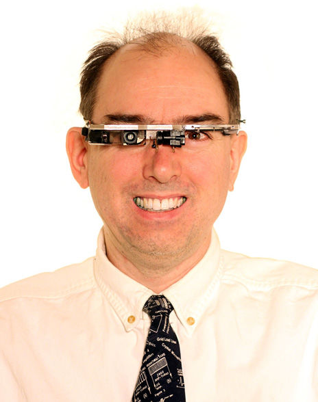史蒂夫·曼恩,1962年出生,今年50多了。早年求學(xué)于MIT,理學(xué)學(xué)士,工學(xué)碩士,1997年拿到了媒體藝術(shù)博士學(xué)位,F(xiàn)在在多倫多大學(xué)當(dāng)教授,在電器與計(jì)算機(jī)工程系,藝術(shù)與科學(xué)系各種跨界地牛掰閃亮著。 別看他這么逗樂(lè),實(shí)在人家被業(yè)界尊為“可穿著技術(shù)之父”。上個(gè)世紀(jì)(1999年)就開(kāi)始帶著圖中的EyeTap眼鏡四處拉風(fēng)。2012年吃麥當(dāng)勞時(shí),還由于帶著這樣酷炫的裝備被人打過(guò),在當(dāng)時(shí)引起了全球范圍的對(duì)于谷歌眼鏡類(lèi)型硬件的大討論。 他在動(dòng)圖里曬的就是自己發(fā)明的三大神器:EyeTap眼鏡,智能腕表,和SWIM連續(xù)波形打印的AR技術(shù)。 曼恩主要的科技成就集中在計(jì)算機(jī)攝影技術(shù)方面:1993年,曼恩就第一次提出了“視頻軌道”算法;還發(fā)明過(guò)使用高壓液壓流體發(fā)生的樂(lè)器(好比,你可以表演彈個(gè)“水”); 上世紀(jì)八九十年代,曼恩開(kāi)發(fā)了CLI(命令行界面)和GUI(圖形用戶(hù)界面),均屬于通過(guò)與現(xiàn)實(shí)世界的天然動(dòng)作進(jìn)行交互的方法。后來(lái)還開(kāi)發(fā)了HCI基于聲樂(lè)的人機(jī)交互技術(shù)。 其總體的開(kāi)發(fā)思路也是很光鮮,瞄準(zhǔn)人類(lèi)的各種天然行為研發(fā)交互技術(shù),并且越做越精細(xì)。 假如說(shuō)這是一個(gè)“搶大神,變身獨(dú)角獸”的時(shí)代,那么上圖左側(cè)笑地低調(diào)的Steve Feiner也被Meta集齊了。 史蒂夫·費(fèi)納是哥大計(jì)算機(jī)系的教授,2014年獲得了IEEE VGTC電氣電子工程師學(xué)會(huì)可視化和圖形技術(shù)委員會(huì)會(huì)議評(píng)比的虛擬現(xiàn)實(shí)終身成就獎(jiǎng)。 1996年他利用可穿透的顯示屏創(chuàng)建第一個(gè)戶(hù)外可移動(dòng)增強(qiáng)現(xiàn)實(shí)系統(tǒng)。其設(shè)計(jì)的The Private Eye頭部佩戴顯示器利用一個(gè)可擺動(dòng)的鏡子,掃描虛擬場(chǎng)景里垂直的LED陣列。探測(cè)屏幕對(duì)角線長(zhǎng)度為1.25英寸,不外圖像會(huì)顯示在18英寸間隔遠(yuǎn)的15英寸屏幕上。