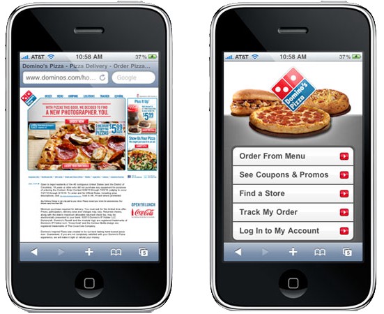 假如你但愿自己的網(wǎng)站能夠輕松的在移動(dòng)端設(shè)備上訪問,那么應(yīng)當(dāng)消除所有移動(dòng)端上可能存在的可用性的題目,下面有12條晉升移動(dòng)端網(wǎng)頁設(shè)計(jì)的建議,確保你的頁面能夠通過 可用性測(cè)試,并提供良好的用戶體驗(yàn)。 1、針對(duì)移動(dòng)端進(jìn)行全面優(yōu)化 桌面端網(wǎng)頁在移動(dòng)端設(shè)備上首要的障礙就是導(dǎo)航的使用?纯聪旅鍰omino批薩的案例,它的桌面端和移動(dòng)端網(wǎng)頁的對(duì)比就相稱顯著,移動(dòng)端頁面經(jīng)由優(yōu)化之后的體驗(yàn)就完全不同。簡樸說來,優(yōu)化后的移動(dòng)端頁面更加干凈,有著更輕易導(dǎo)航的CTA按鈕