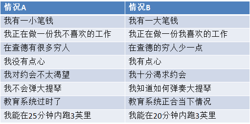 糊口中,任何但愿將情況A轉(zhuǎn)變成情況B的情形,都放在這個盒子里。情形A代表你現(xiàn)在的情況,你但愿去改變他們,情形B是理想情形。如下面的例子: