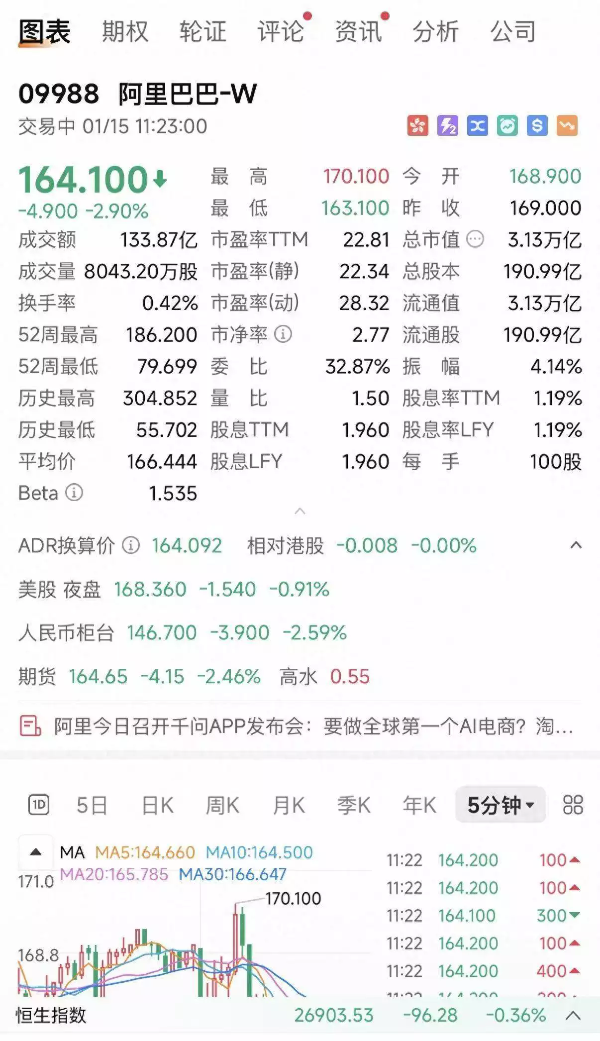 阿里巴巴港股今日(以您看到信息的時間為基準,通常指最近一個交易日)下跌近3%,這通常是市場對公司近期動態(tài)、行業(yè)環(huán)境或宏觀經(jīng)濟因素的直接反應。