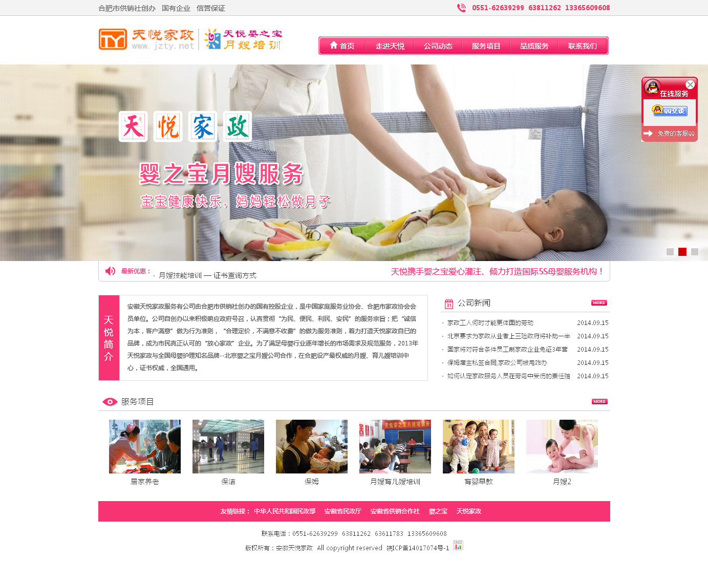 安徽天悅家政服務(wù)有公司由合肥市供銷社創(chuàng)辦的國有控股企業(yè),是中國家庭服務(wù)業(yè)協(xié)會、合肥市家政協(xié)會會員單位。公司自創(chuàng)辦以來積極響應(yīng)政府號召,認(rèn)真貫