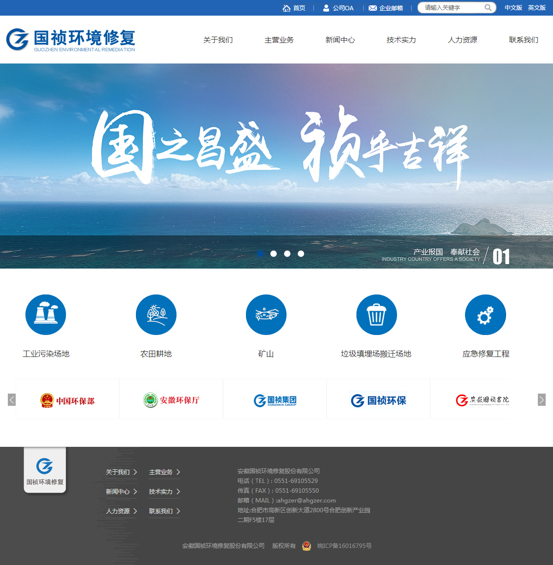 安徽國禎環(huán)境修復股份有限公司是國禎集團旗下專業(yè)從事土壤及地下水修復工程的高新技術(shù)企業(yè),為中國環(huán)境修復產(chǎn)業(yè)聯(lián)盟成員企業(yè)。公司注冊資金人民幣6000萬元,業(yè)務(wù)范圍涵蓋土壤及地下水場地調(diào)查、風險評估、方案設(shè)計、修復工程施工與維護等。