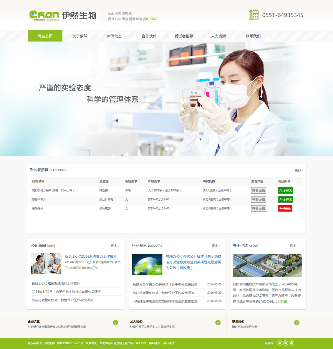 合肥伊然生物技術(shù)有限公司成立于2014年5月。是一家提供醫(yī)藥技術(shù)咨詢,醫(yī)藥產(chǎn)品研發(fā)與技術(shù)轉(zhuǎn)讓,臨床研究CRC服務(wù),第三方稽查、數(shù)據(jù)管理與統(tǒng)計(jì)等業(yè)務(wù)的SMO公司。